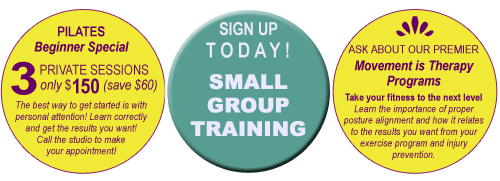 Small Group Training in prepaid four week sessions as well as private sessions, and Movement is Therapy™ programs. Learn more about our programs.